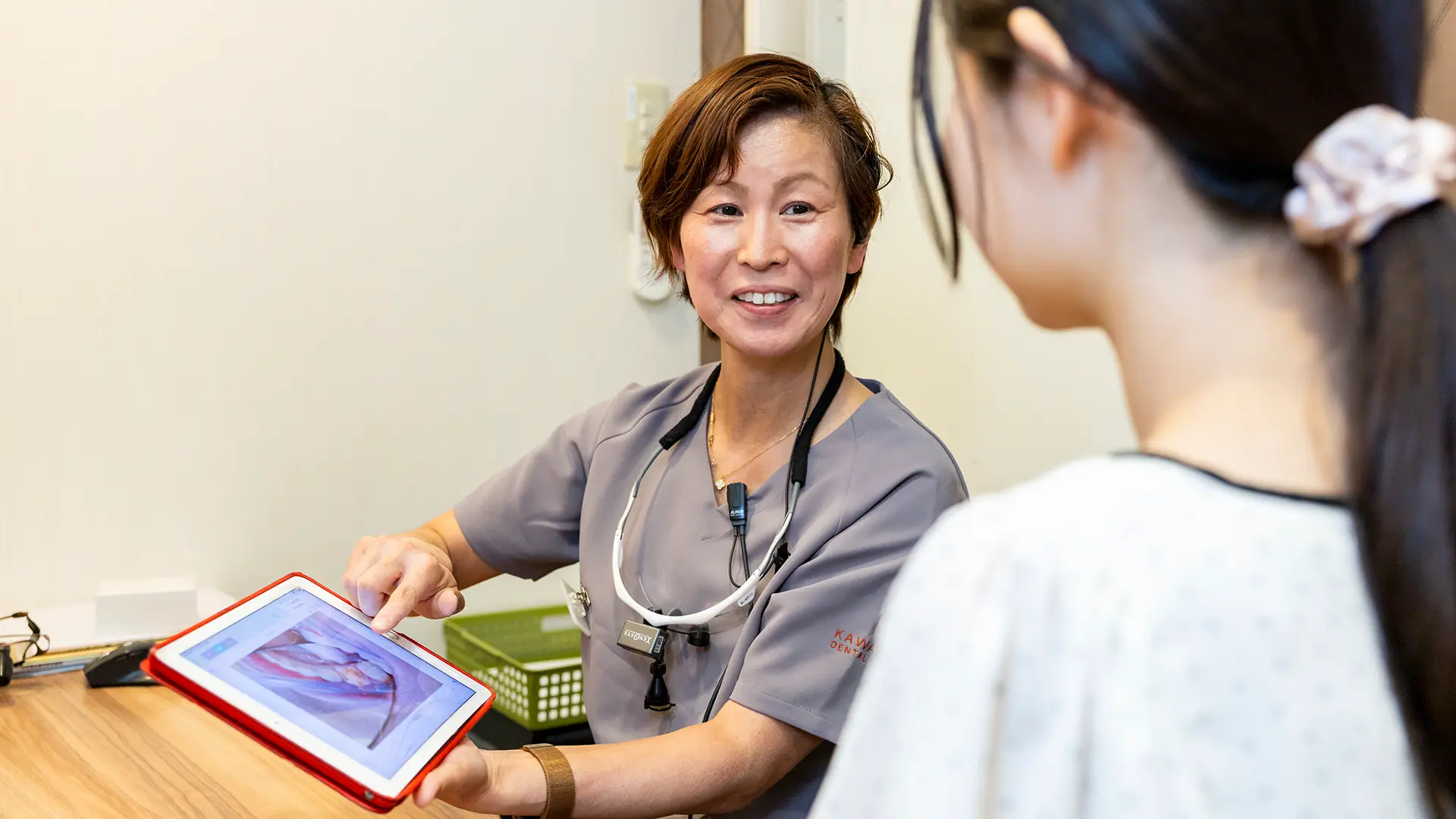診断時に、歯や噛み合わせの状態を総合的に判断し、最適な治療法をご提案します。
