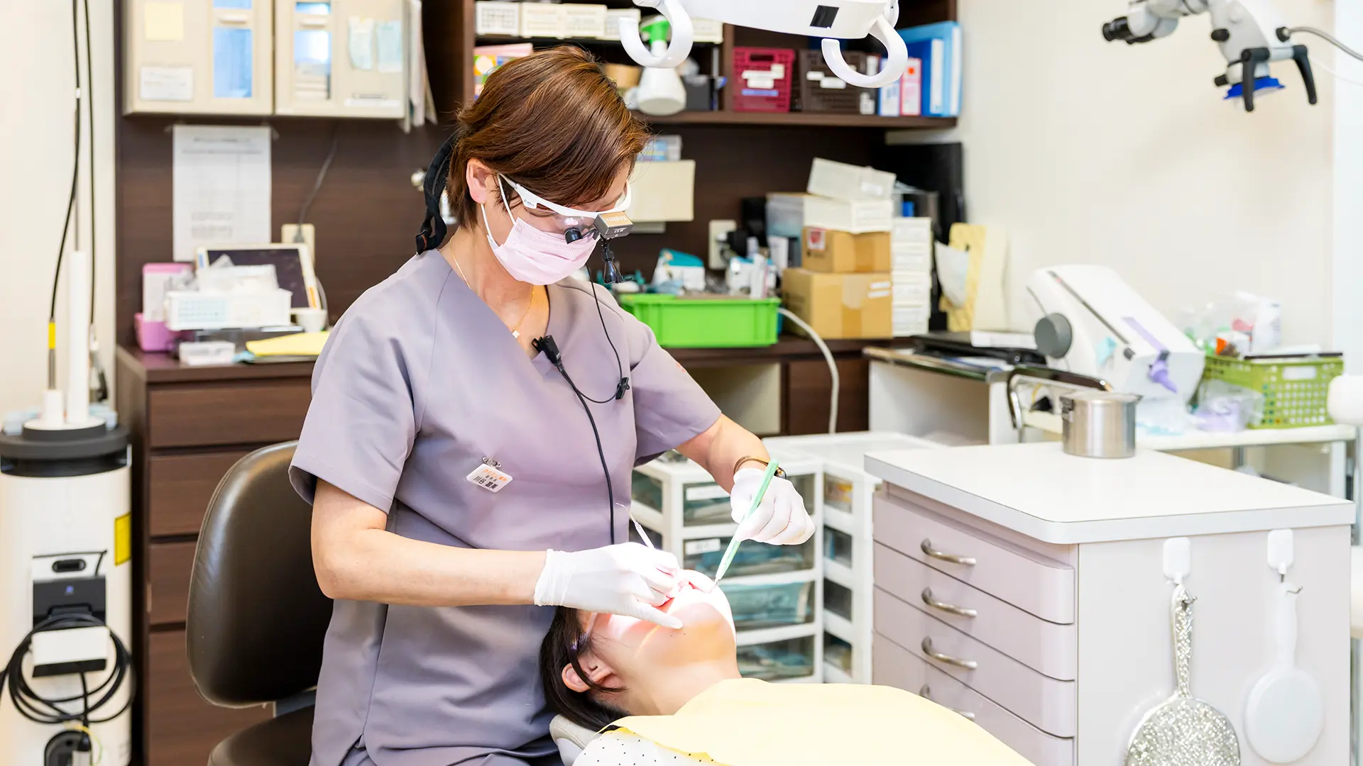 マイクロスコープや拡大鏡を使用して治療部位を詳細に確認しながら進めるため、虫歯菌の取り残しを防ぎ、隙間なく詰められます。