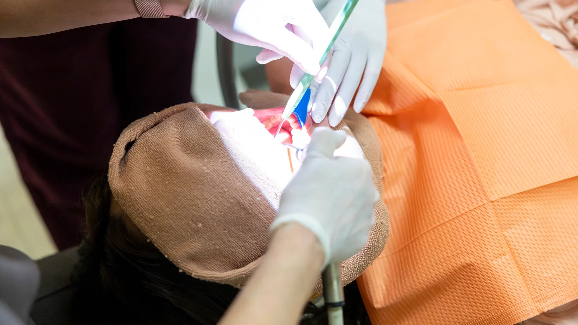 細部まで見逃さないよう、拡大鏡を使って精密に処置を行います。